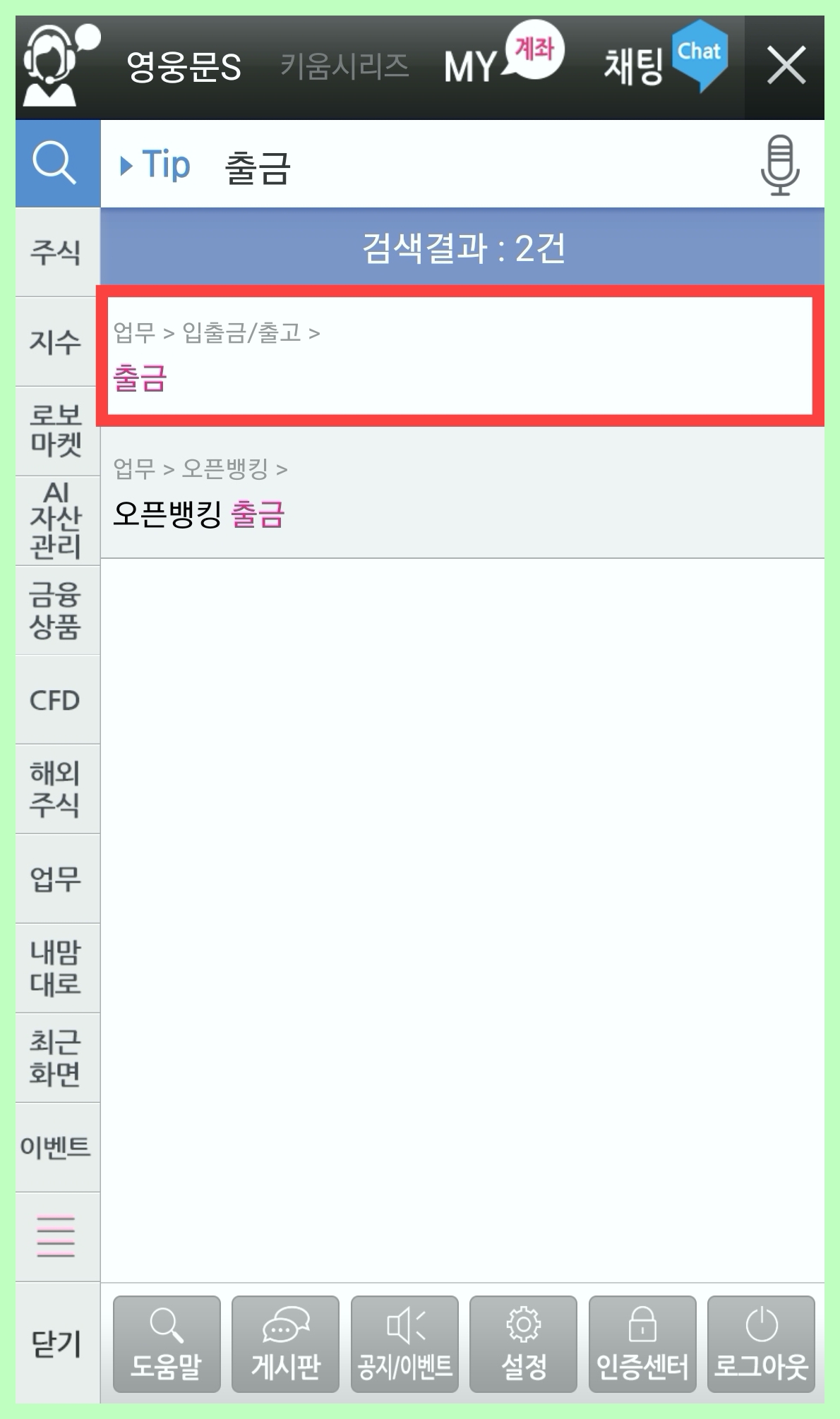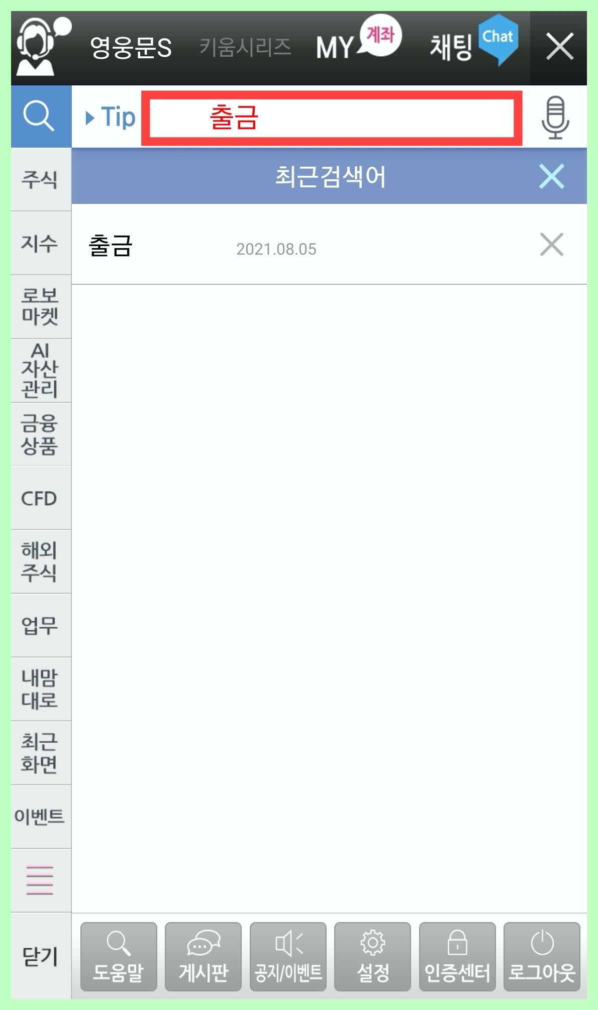 ▣ 키움증권(영웅문S) 출금 방법, 예수금 출금 방법