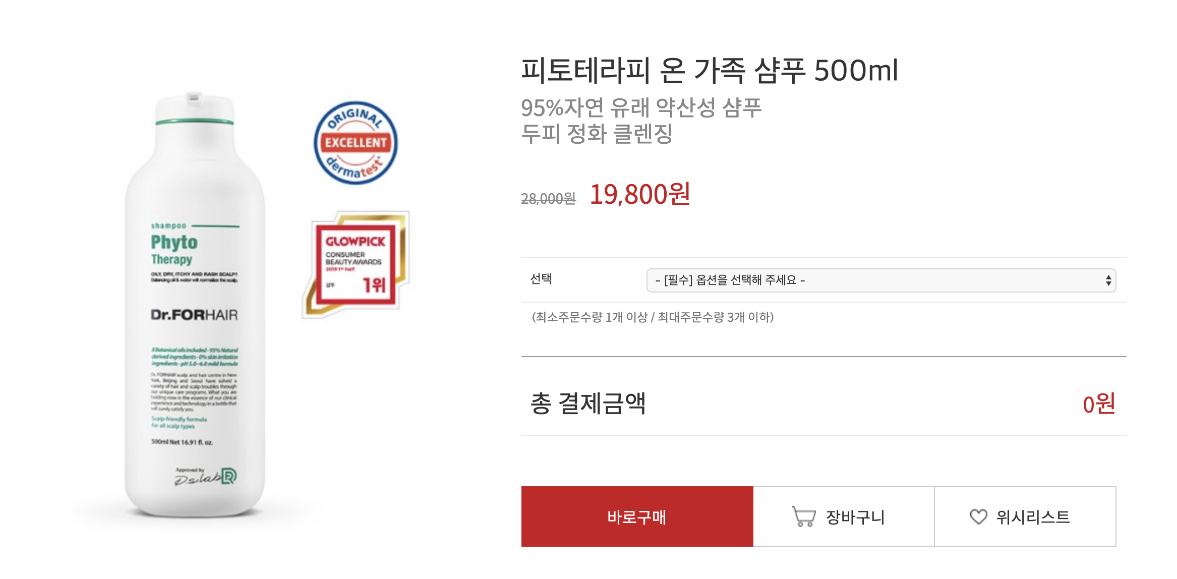 가격은 닥터포헤어 공식홈페이지 기준으로 19,800원에 판매 중 입니다.(3월29일 기준)