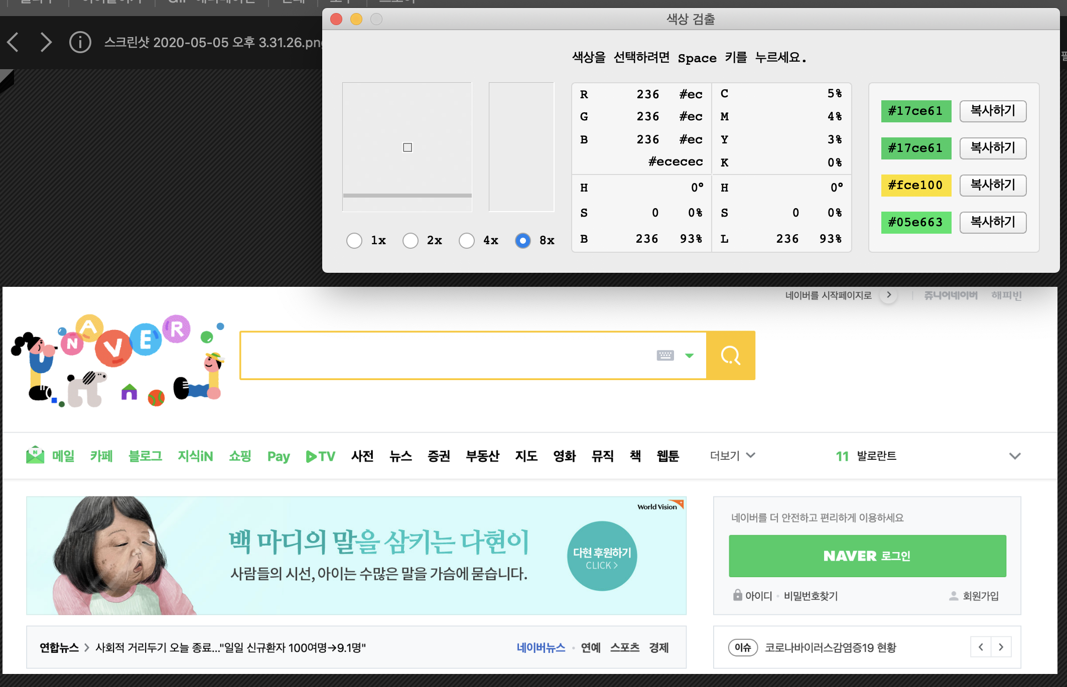 네이버의 초록색에 사용된 색상코드는 #17ce61 입니다.